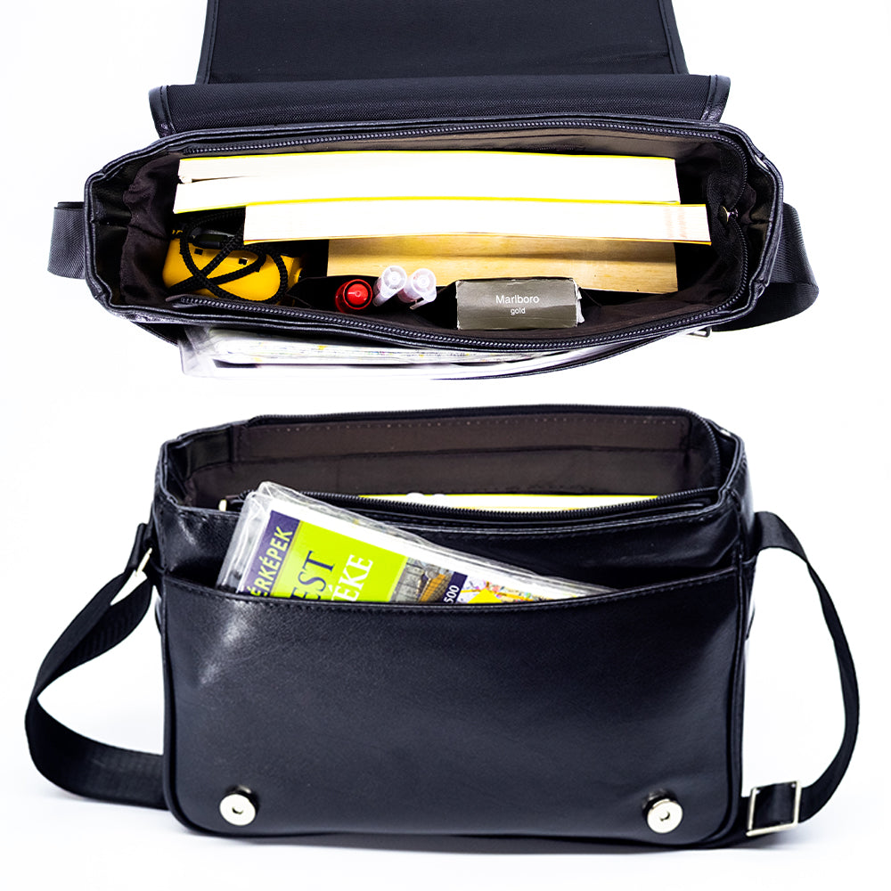 - Könnyű hordozhatóság: Fekete válltáska vagy kereszttartó táska, amely könnyen hordozható.