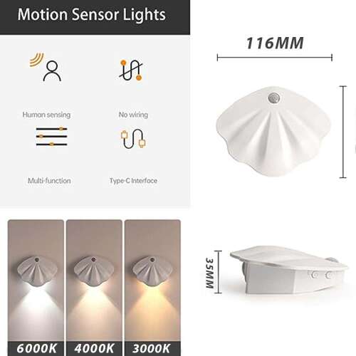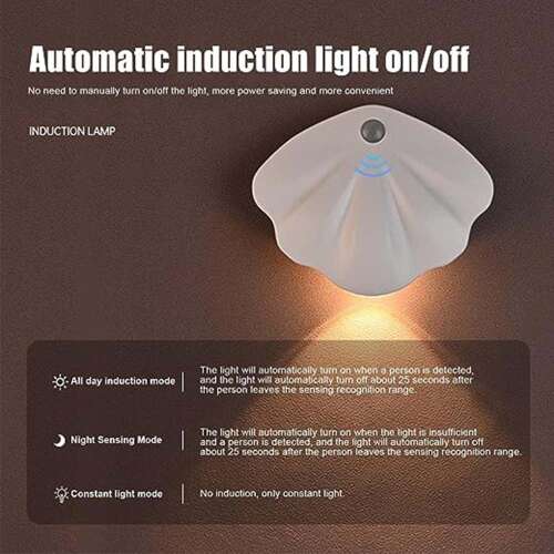 Ez a kagyló alakú éjszakai lámpa tökéletes választás otthona bármely helyiségébe, legyen szó hálószobáról, folyosóról vagy gyerekszobáról. Elegáns megjelenése és intelligens működése praktikus és dekoratív világítási megoldást nyújt.