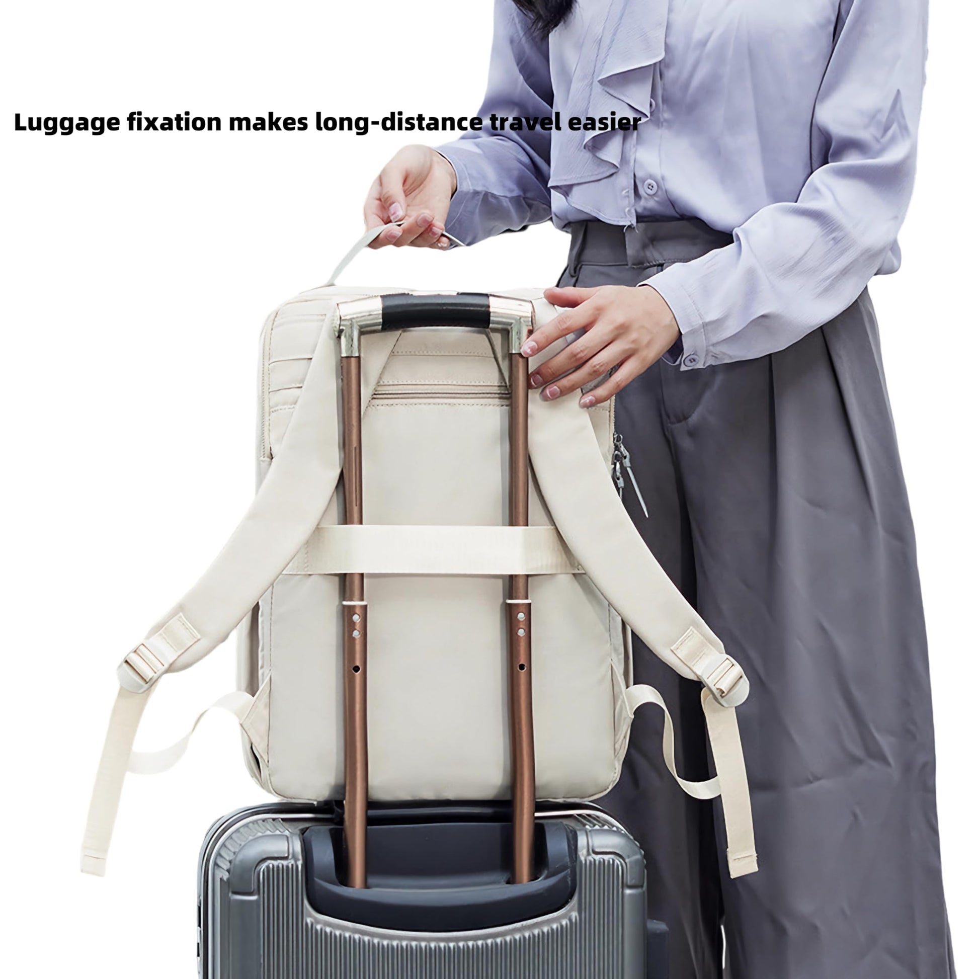 A hátsó poggyászpánt lehetővé teszi, hogy a táskát egyszerűen rögzítsd a bőrönd húzószárához – tökéletes választás repülőutakhoz vagy üzleti utakhoz.