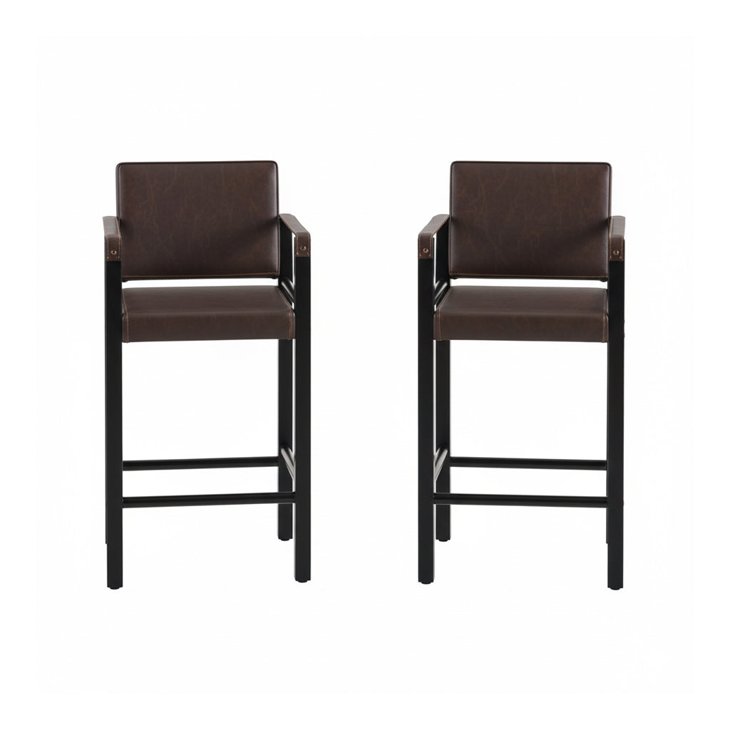 A masszív, fekete fa vázak stabil alapot és letisztult, ipari hangulatot kölcsönöznek, míg a gazdag barna, prémium bőr hatású ülő- és hátfelületek kifinomult megjelenést és egyszerű tisztíthatóságot garantálnak. Az ergonomikusan kialakított karfák mindkét széken extra támaszt és kényelmet nyújtanak a hosszabb beszélgetések során is.