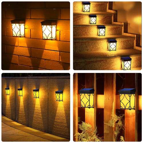 Retro napelemes kerítéslámpák: Minden kerítéslámpa 2 LED gyöngyöt tartalmaz, RGB lámpák és borostyánsárga lámpák állnak rendelkezésre. A tetõ alakú napelemek és a lámpaház mintázata retró kis kerti díszléccé teszi.