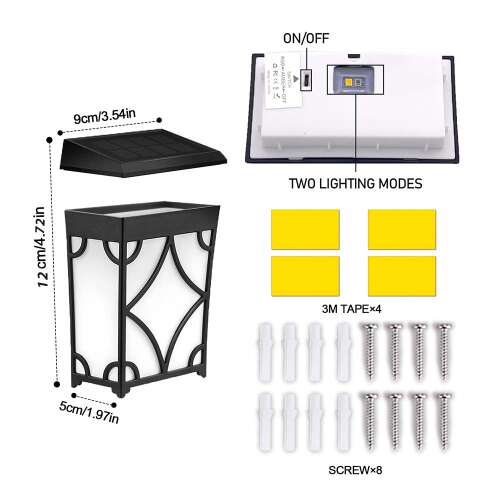 Kerti kerítés dekoráció: A kerítéslámpához szerelõeszközök járnak, a kerítéslámpa falba, fába csavarozható, vagy 3M ragasztószalaggal ragasztható. Biztonságosan rögzíthetõ kerítésekhez, kertekhez, udvarokhoz, erkélyekhez, lépcsõkhöz, falakhoz, teraszokhoz és fedélzetekhez.