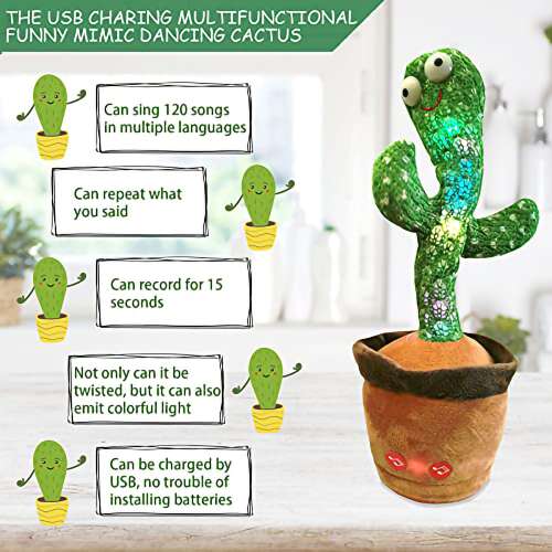 Éneklés, tánc és villogás: A táncoló kaktuszjáték utánozza és énekel több mint 120 dalt. Ritmikus kígyószerû mozdulatokkal és táncolással, valamint villogó fényekkel együtt. A vidám zene és tánc nagyszerû a jó hangulat megteremtéséhez és partik megszervezéséhez.