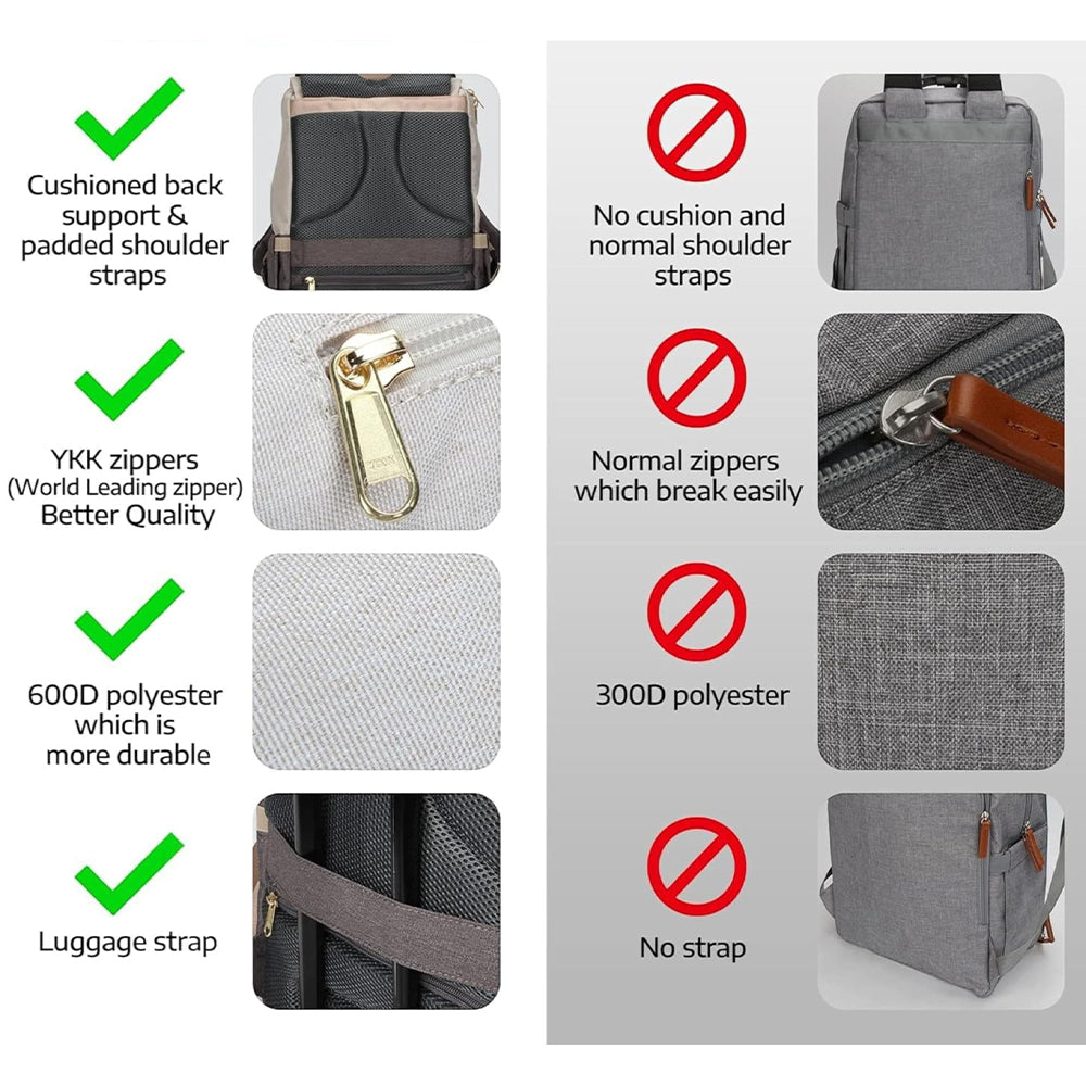 Kiváló minőségű és biztonságos felhasznált anyagok A táska külső héja vízálló és szakadásálló oxfordi szövetből, belseje poliészterből készült, vízhatlan cipzáras zsebbel a nedves tárgyak számára. Környezetbarát, szagtalan és BPA-mentes, így maximális biztonságot nyújt babája számára.