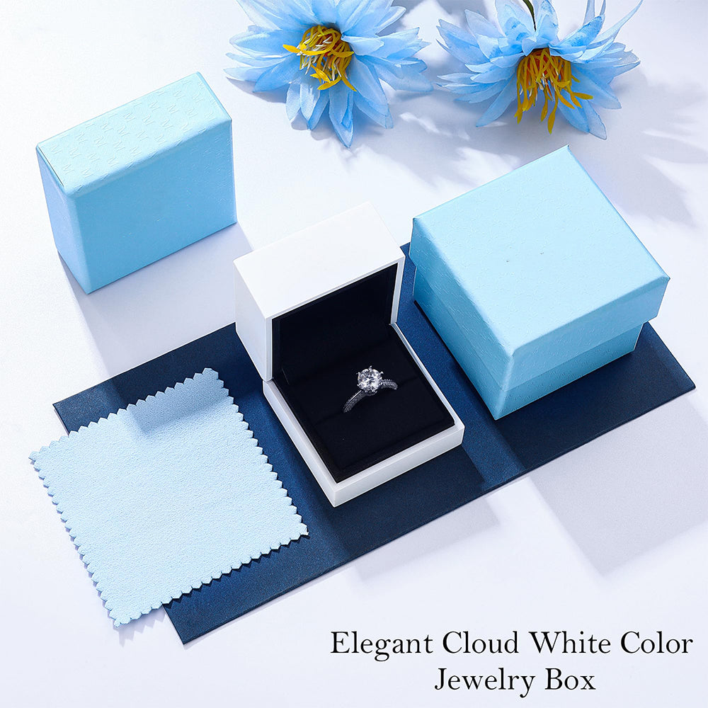 - Fényűző csomagolás – Elegáns díszdoboz beépített fénnyel, amely kiemeli a moissanit gyűrű ragyogását