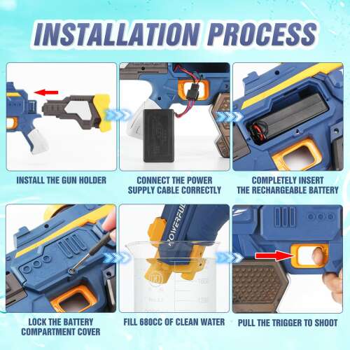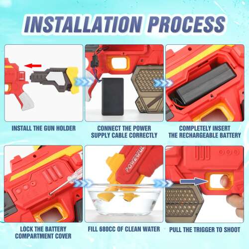 Ez az automatikus vízfeltöltésû elektromos vízpisztoly kiváló szórakozást nyújt a nyári napokra, és garantált élményt biztosít felnõtteknek és gyerekeknek egyaránt.