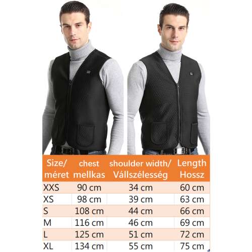 - Méretkülönbségek: A méretkülönbségek 0,5-2 cm között lehetnek. A mellény gyártói címkézése eltérhet az európai méretezéstől.