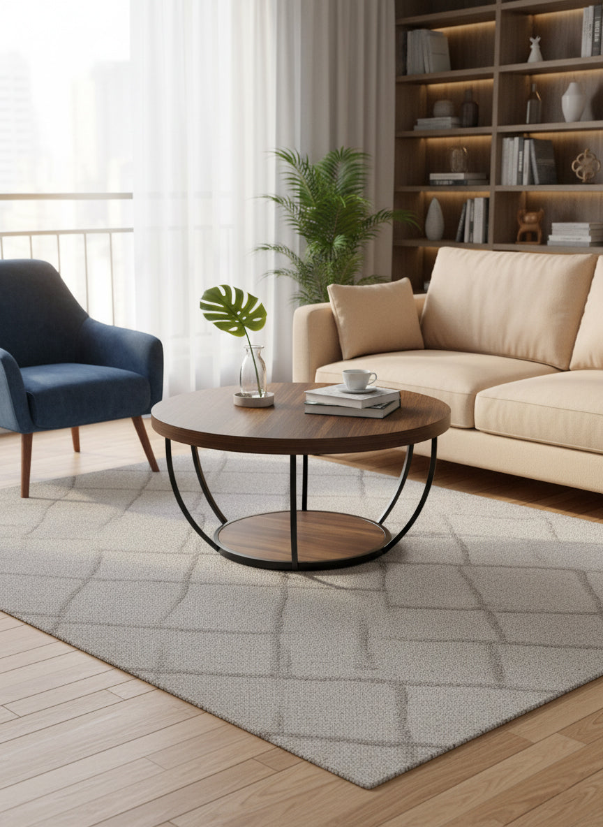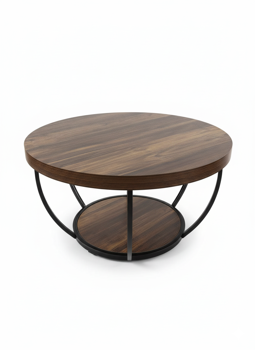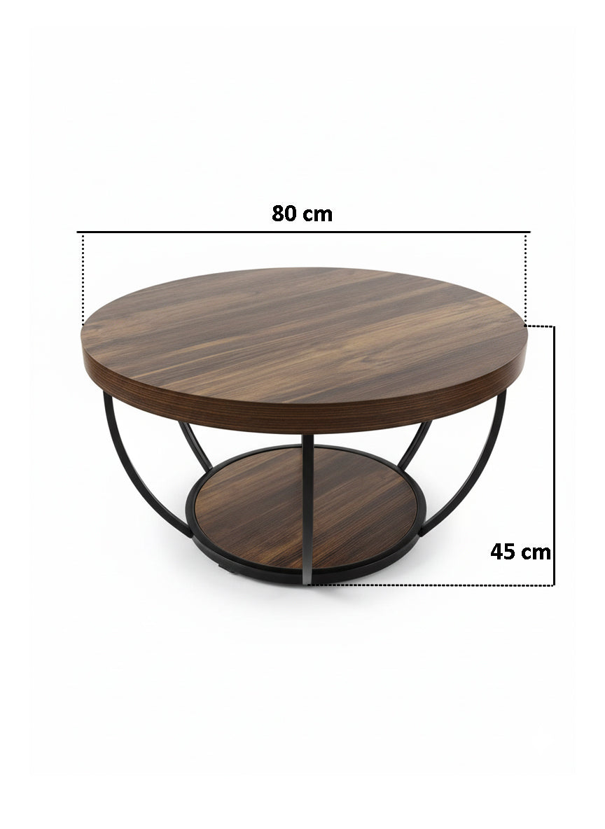 Dollcini Otthon Kerek Fa Dohányzóasztal Ipari Stílusban – Alsó Polccal