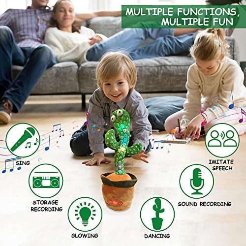 Éneklés, tánc és villogás: A táncoló kaktuszjáték utánozza és énekel több mint 120 dalt. Ritmikus kígyószerû mozdulatokkal és táncolással, valamint villogó fényekkel együtt. A vidám zene és tánc nagyszerû a jó hangulat megteremtéséhez és partik megszervezéséhez.
